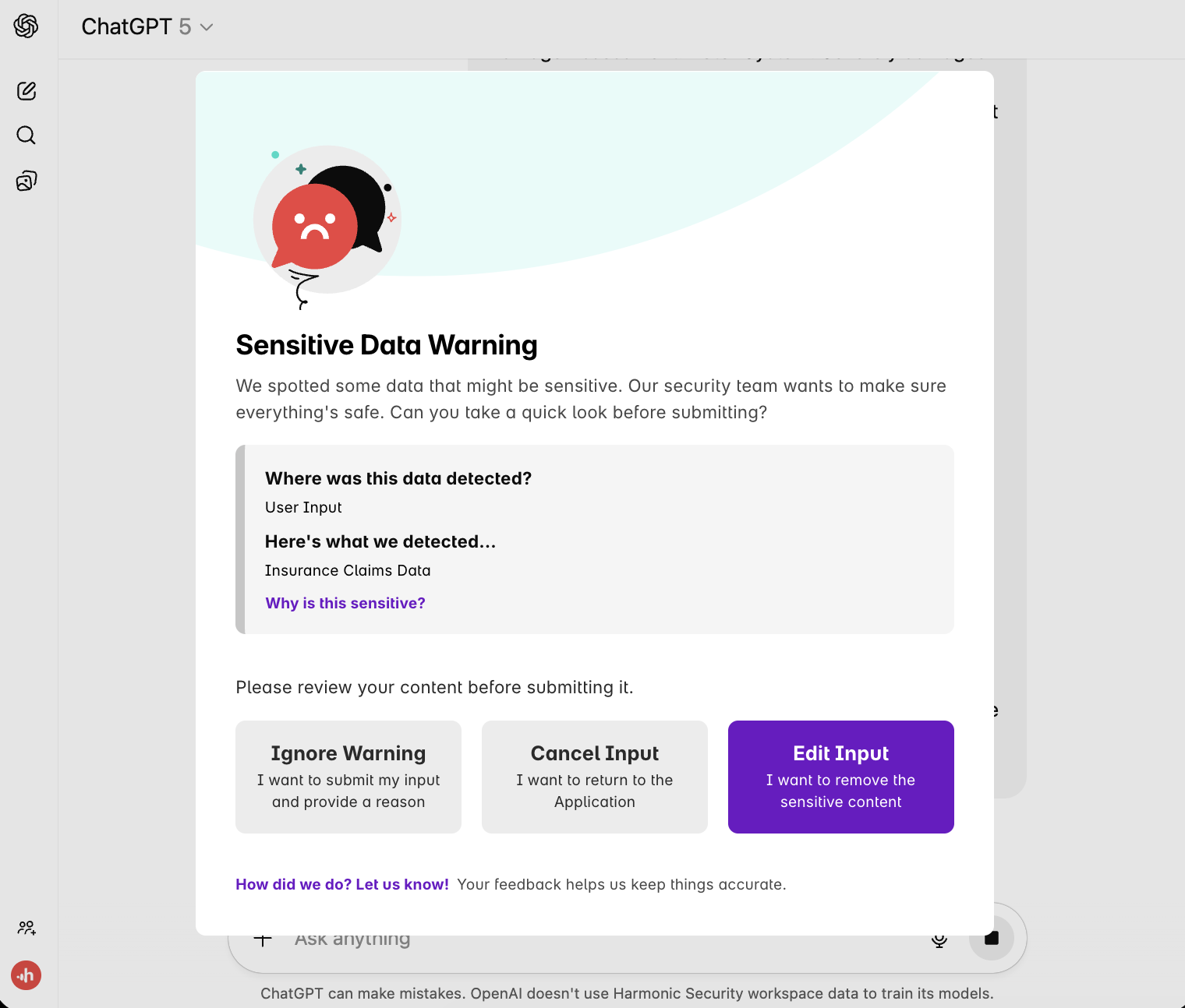 Our Small Language models detect sensitive data in milliseconds, enabling you to coach users at the point of data loss.
