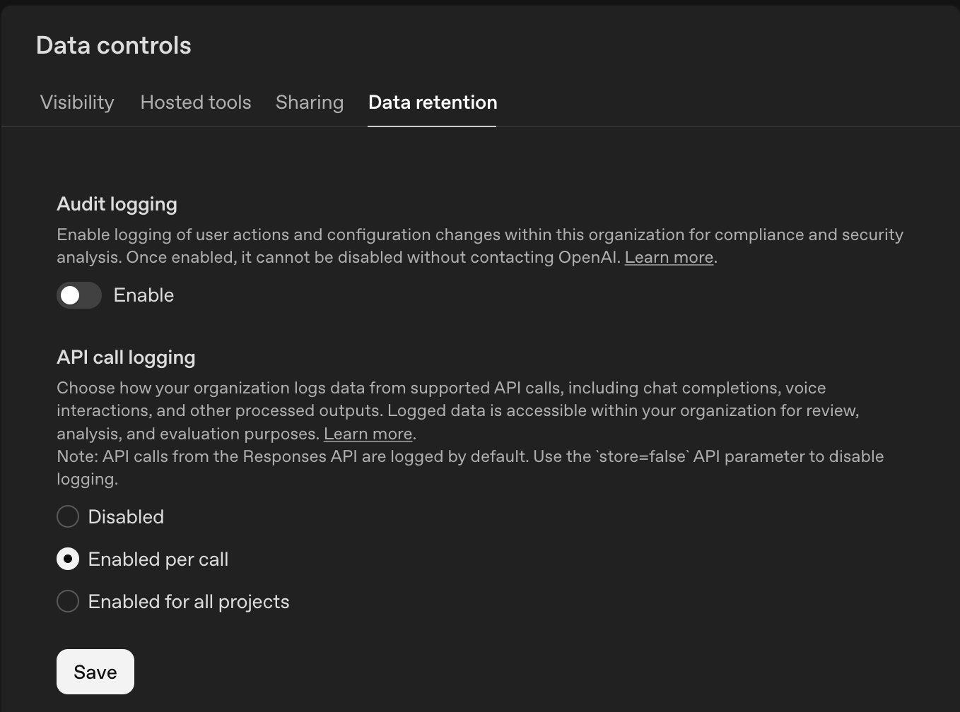 Don’t forget the API Platform side: enable Audit logging under Data Controls → Data Retention. Once enabled, it cannot be disabled without contacting OpenAI—which is a security feature, not a bug.